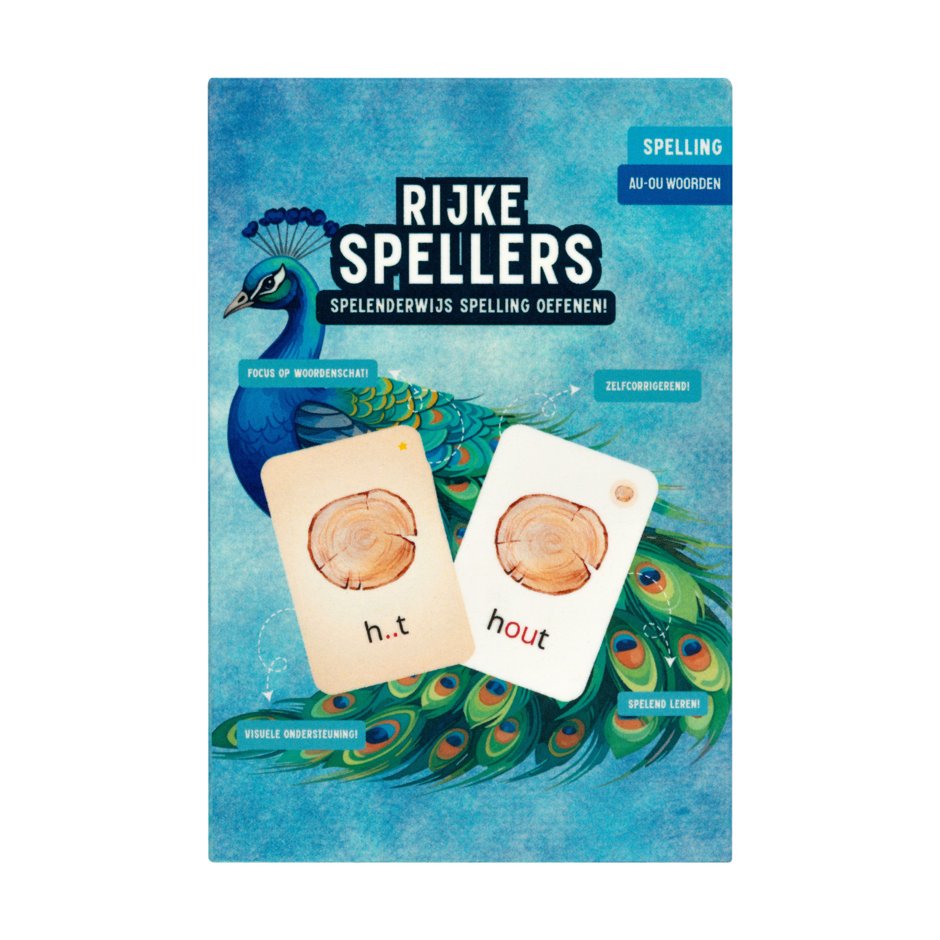Deze bundel combineert het kaartspel met geïsoleerd oefenen van de au- en ou-klank. Door de klanken eerst los te oefenen en daarna toe te passen in volledige woorden, krijgen leerlingen meer grip op de juiste schrijfwijze.